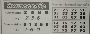 หวยเด็ด เลขดัง ถล่มเจ้ามือ เน้นเลขเด่น เลขรอง คัดสันสำนักดังๆ เลขน่าลุ้น นำโชคมาสู่ผู้เสี่ยงโชคในงวดนี้ ใครยังไม่มีเลขในใจ เซฟเก็บไว้ดูได้