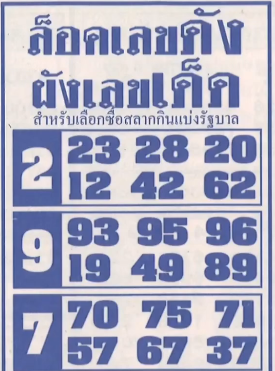 หวยเด็ด เลขดัง ถล่มเจ้ามือ เน้นเลขเด่น เลขรอง คัดสันสำนักดังๆ เลขน่าลุ้น นำโชคมาสู่ผู้เสี่ยงโชคในงวดนี้ ใครยังไม่มีเลขในใจ เซฟเก็บไว้ดูได้