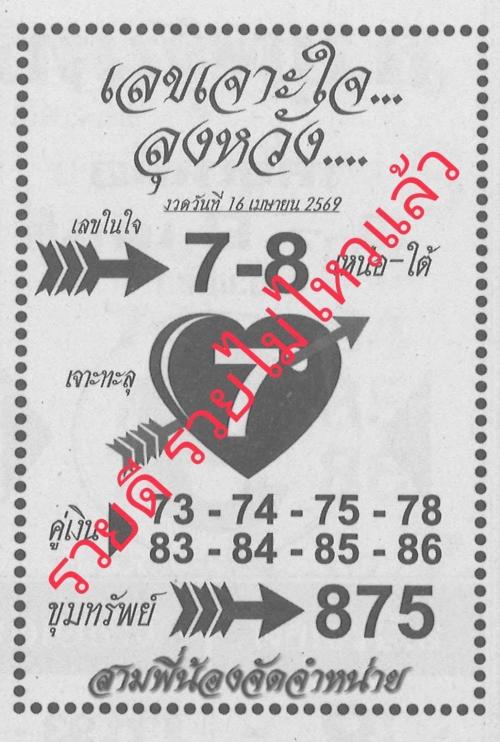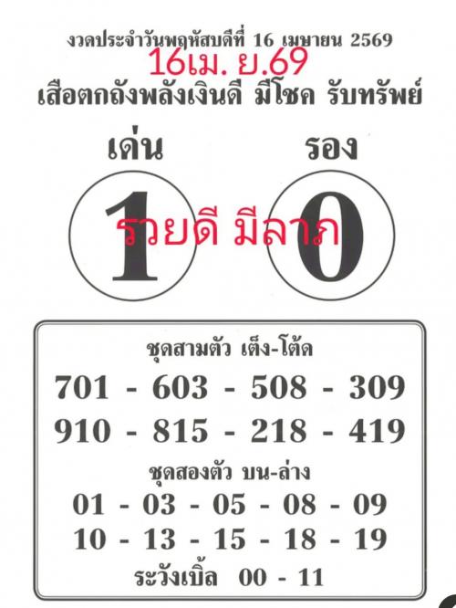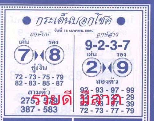 หวยเด็ด เลขดัง ถล่มเจ้ามือ เน้นเลขเด่น เลขรอง คัดสันสำนักดังๆ เลขน่าลุ้น นำโชคมาสู่ผู้เสี่ยงโชคในงวดนี้ ใครยังไม่มีเลขในใจ เซฟเก็บไว้ดูได้